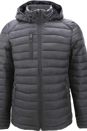 Mens Down Alternative Jacket Quilted Lightweight Packable Padding Coat with Detachable Hood