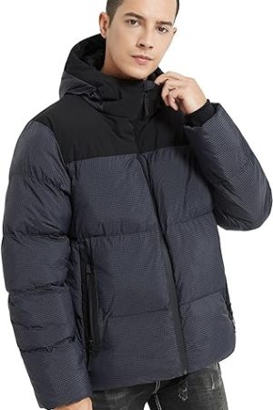 Mens Puffer Jacket with Hood Waterproof Quilted Thicken Warm Winter Coat Insulated Parka Jacket Ski Coat