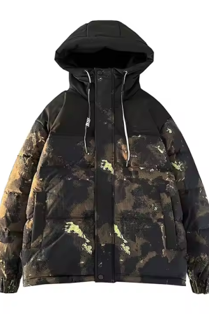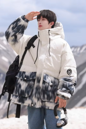 Hooded Print Contrast White Duck Down Winter Puffer Jacket