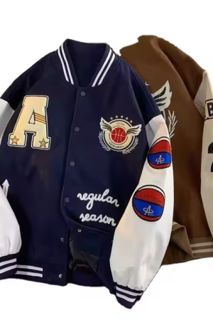 American Letter Embroidered Unisex Thickened Baseball Uniform Jacket