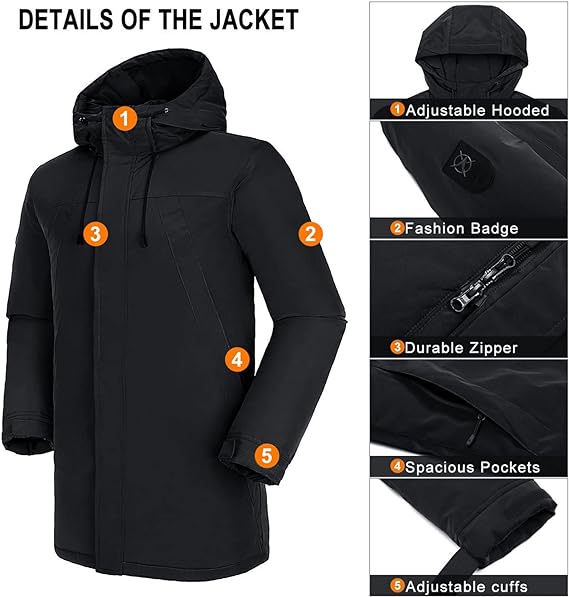 This warm winter jacket is suitable for casual daily wear, work, travelling, hiking, camping, skiing, snowboarding and many other winter outdoor activities.