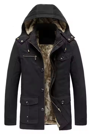 Mens Winter Jackets with Removable Hood Fleece Lined Cotton Military Work Jackets Outerwear Coats with Pockets